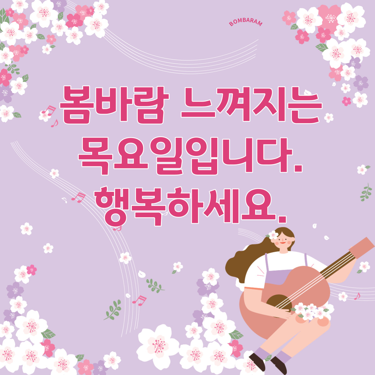 봄바람이 느껴지는 목요일입니다. 행복하세요. 이제 봄날이 되면 바람도 따뜻해지고 꽃도 필텐데요. 봄 이미지로 좋은 이미지인 듯합니다.