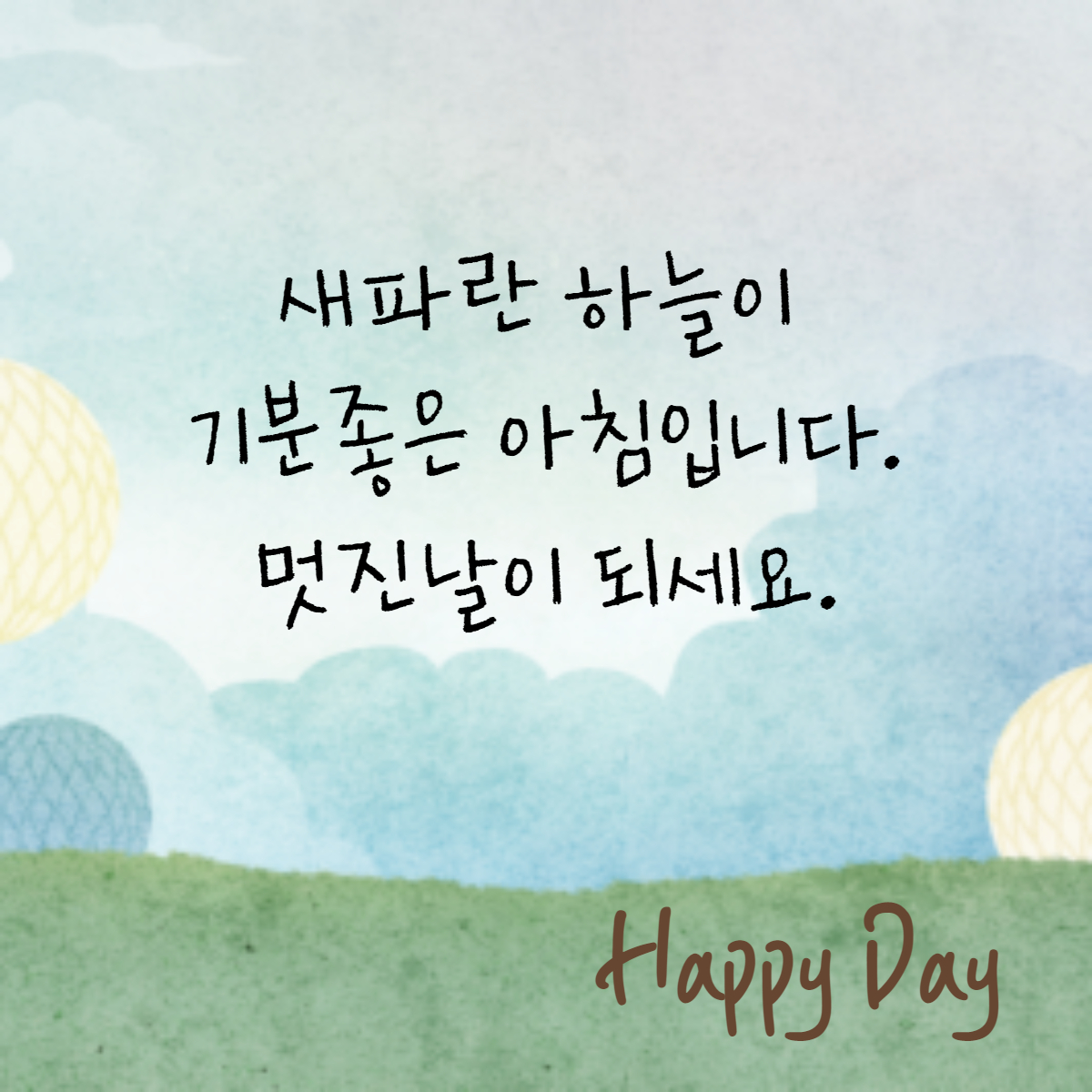 예쁜 그림과 다정한 인사말이 쓰인 이미지를 만들어보았습니다. 카톡이나 문자 메시지 보낼 때 사용하시면 좋겠습니다. 친구나 가족 회사 동료에게 안부 인사나 따뜻한 말 한마디로 하루를 즐겁게 보냈으면 좋겠습니다.