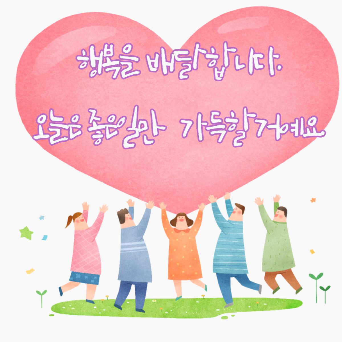 행복을 배달합니다. 오늘도 좋은 일만 가득할 거예요. 행복도 택배로 시킬 수 있으면 좋을 것 같아요.