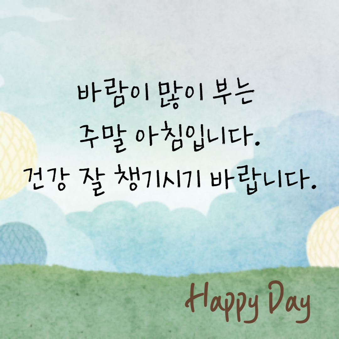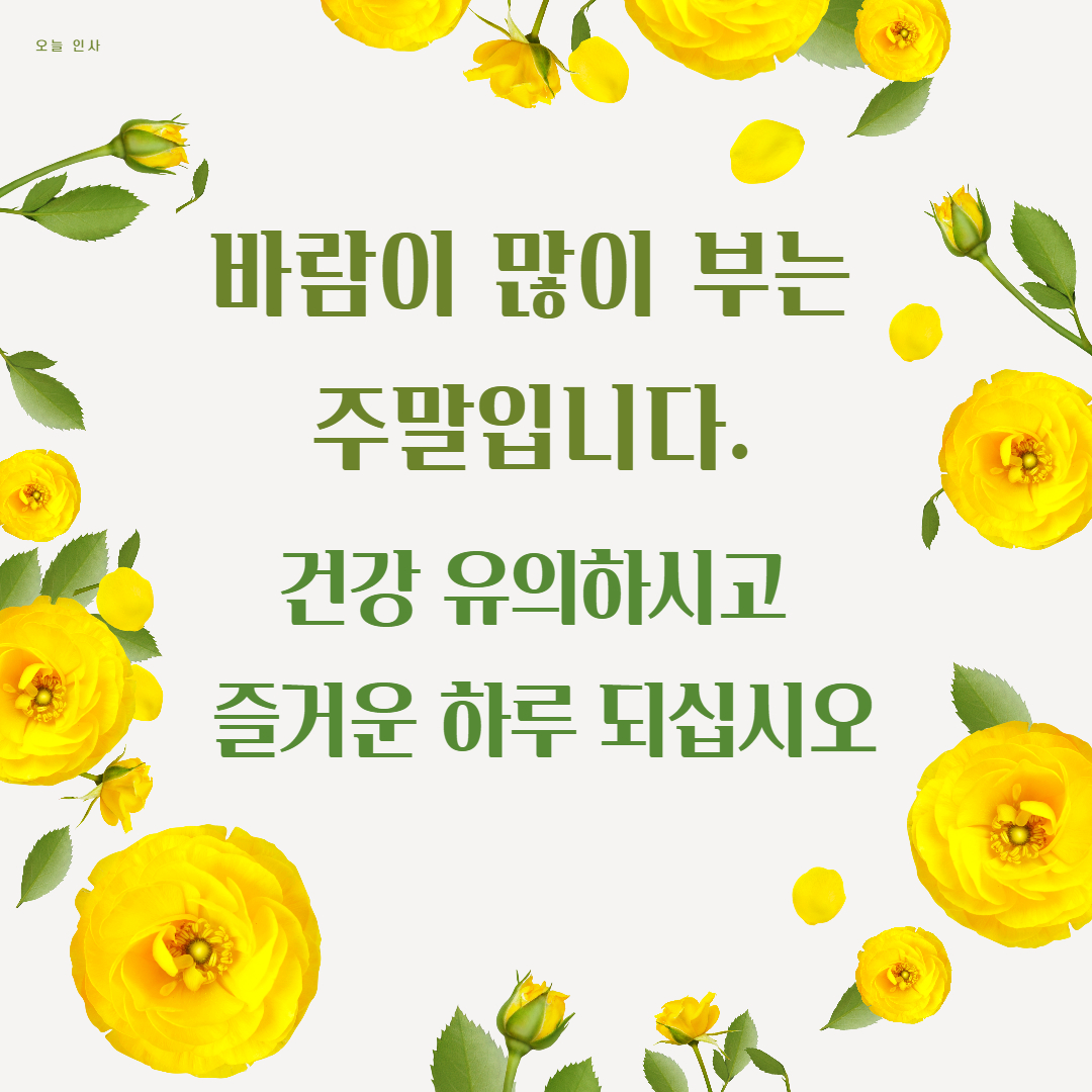 바람이 부는 주말 아침입니다. 건강 잘 챙기시기 바랍니다.