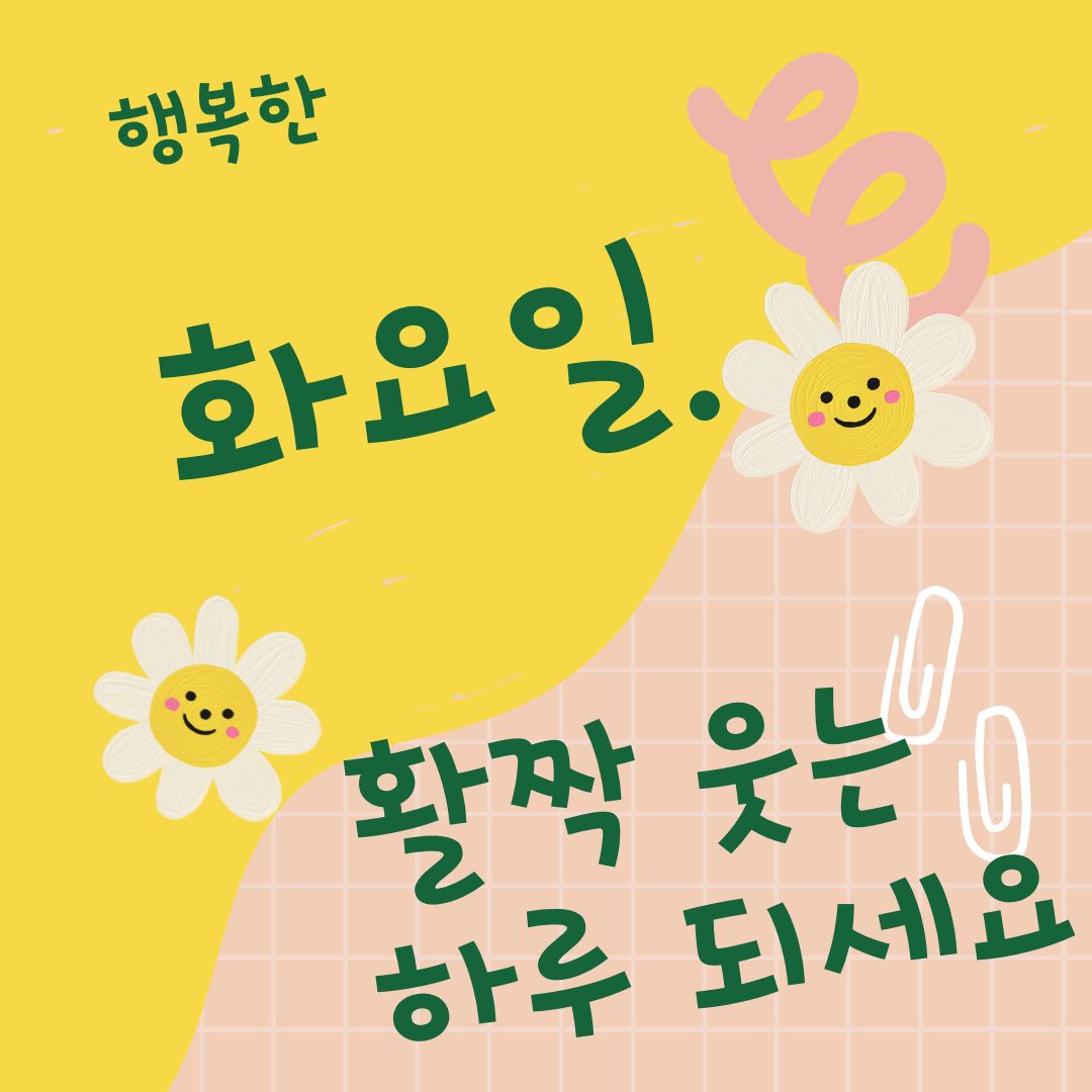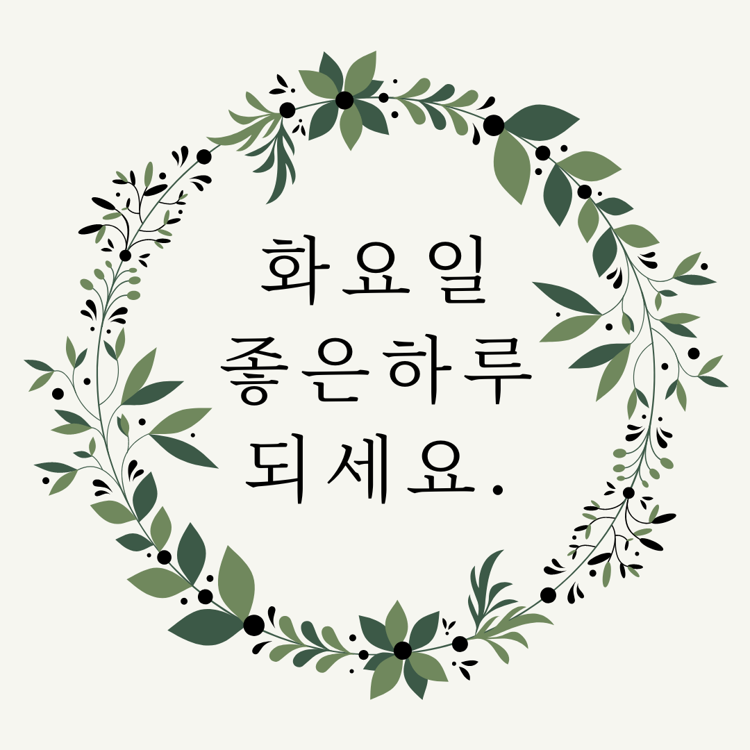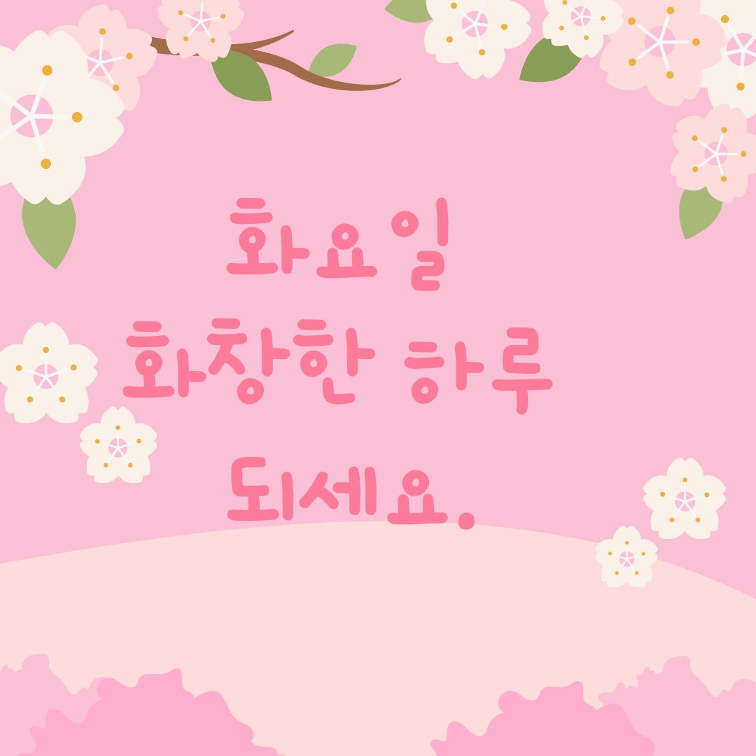 화요일 인사말 이미지를 만들어보았습니다. 봄 이미지에 맞게 산뜻하게 만들어보았으니 가족 친구들에게 인사말을 보내보세요. 카톡이나 문자 메세지로 보내시면 좋을 것 같습니다.