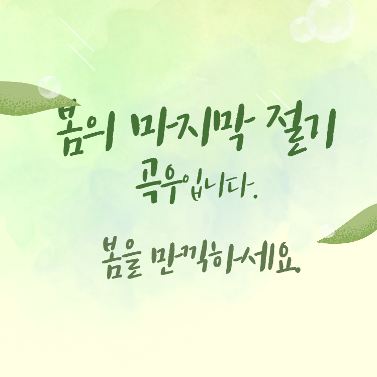 봄의 마지막 절기 곡우입니다. 봄을 만끽하세요.