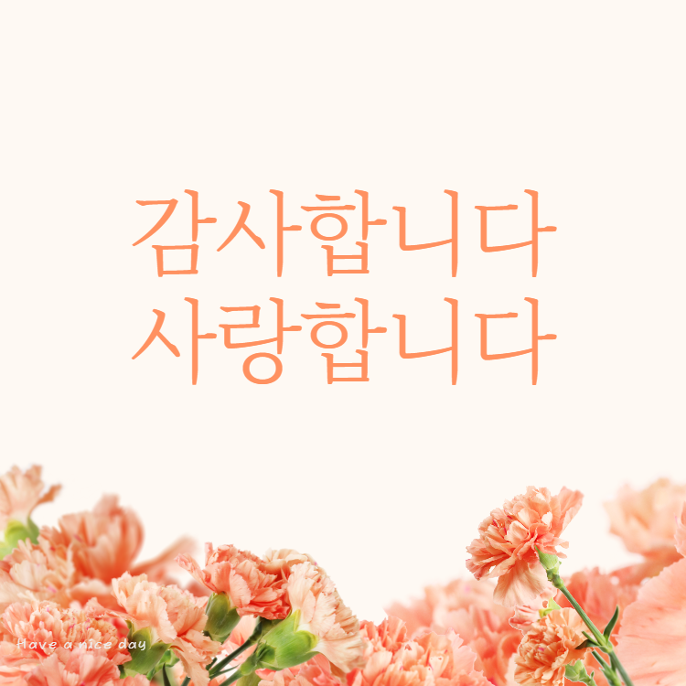 카네이션 사진이 들어있는 감사합니다 사랑합니다 이미지입니다.