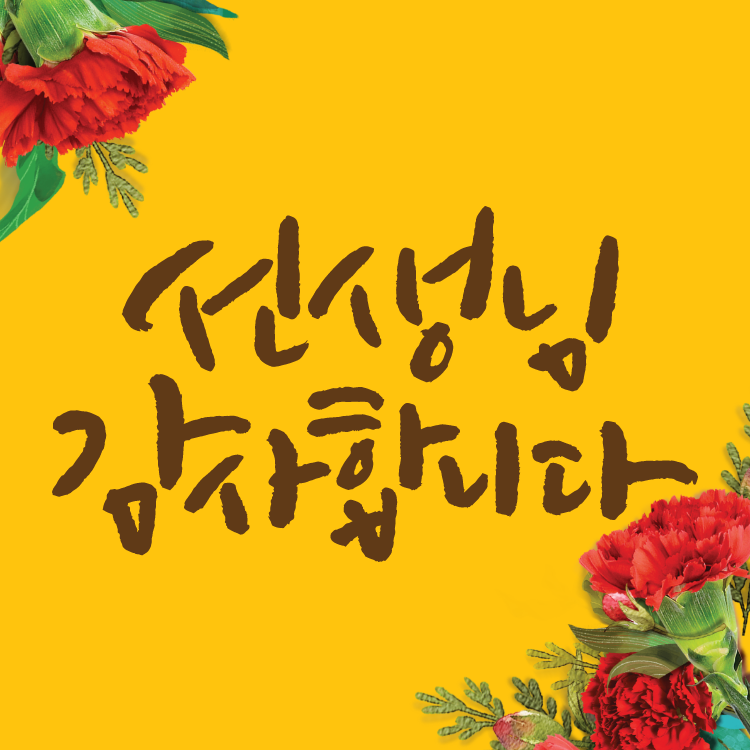 선생님 감사합니다. 이미지입니다. 붉은색 카네이션 이미지와 캘리그라피 문자가 눈에 뜨입니다.