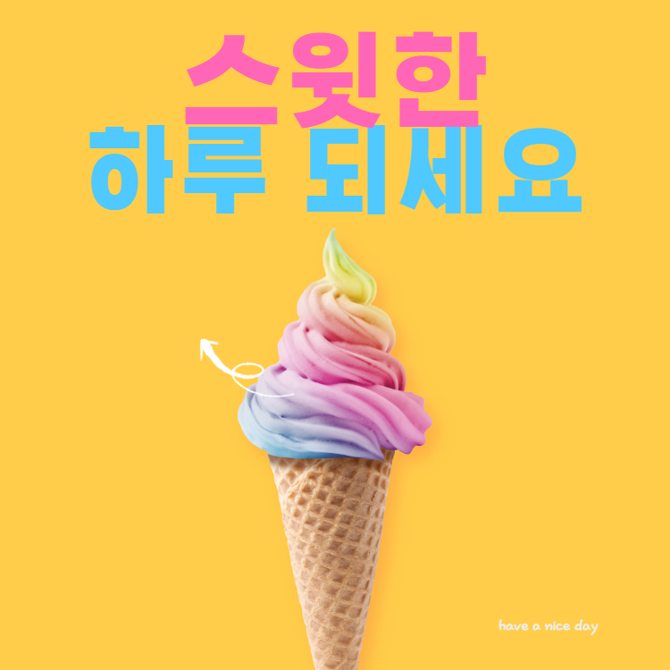 아이스크림처럼 스윗한 하루 보내세요. 여름 아침 인사말로 적당합니다. 레인보우 아이크림이 예쁩니다.