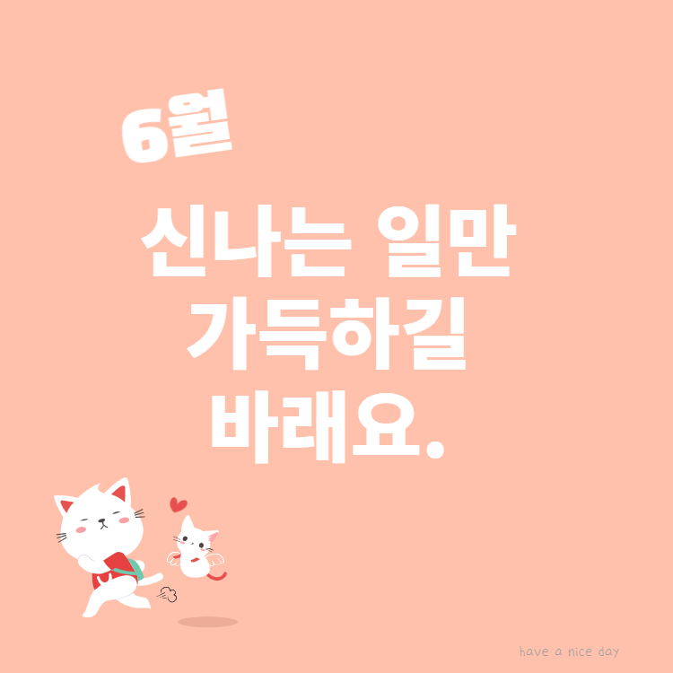 계절의 여왕 오월을 지나 6월이 왔습니다. 일년이 반이 지나는 유월에 카톡 메세지나 프로필 사진에 적당한 6월 인사말 이미지 모음을 만들었으니 다운 받아서 사용하세요.