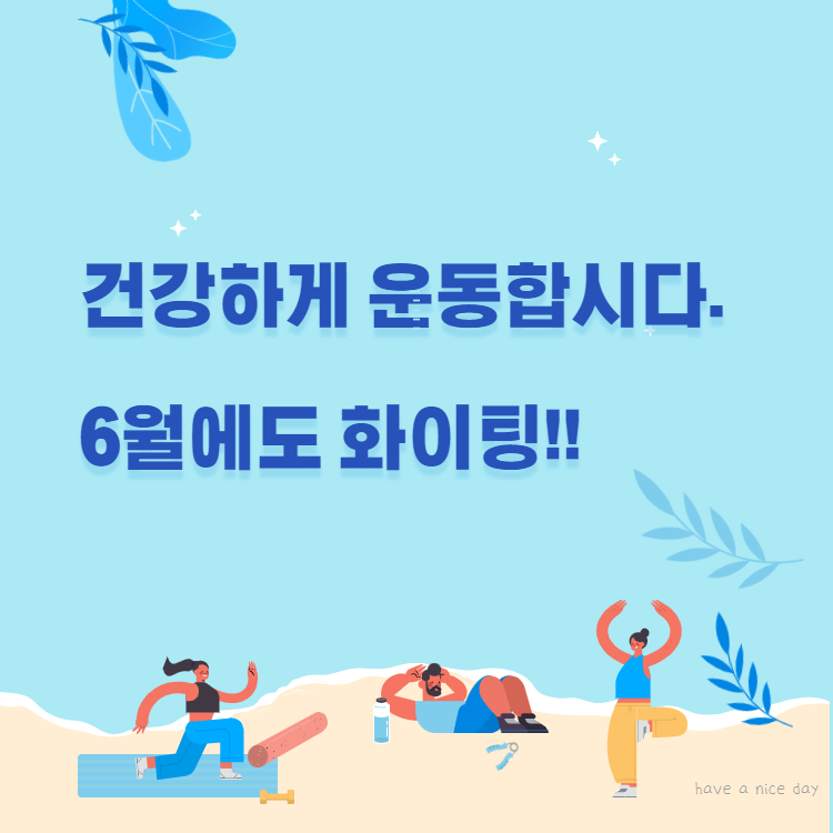 건강하게 운동합시다. 6월에도 화이팅하시고 멋진 몸매로 휴가를 떠나요.