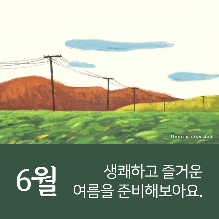 6월 인사말 아침 이미지입니다. 본격적인 여름의 시작을 알리는 6월입니다. 좋은 일만 가득한 달 되세요.