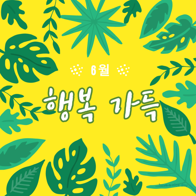 6월 첫날 아침 인사말 이미지입니다. 일년의 반이 지나가는 6월에는 행복 가득한 날 되시기 바랍니다. 초록색의 나뭇잎이 가득한 이미지입니다. 아래 첨부파일을 다운로드 하셔서 사용하세요.