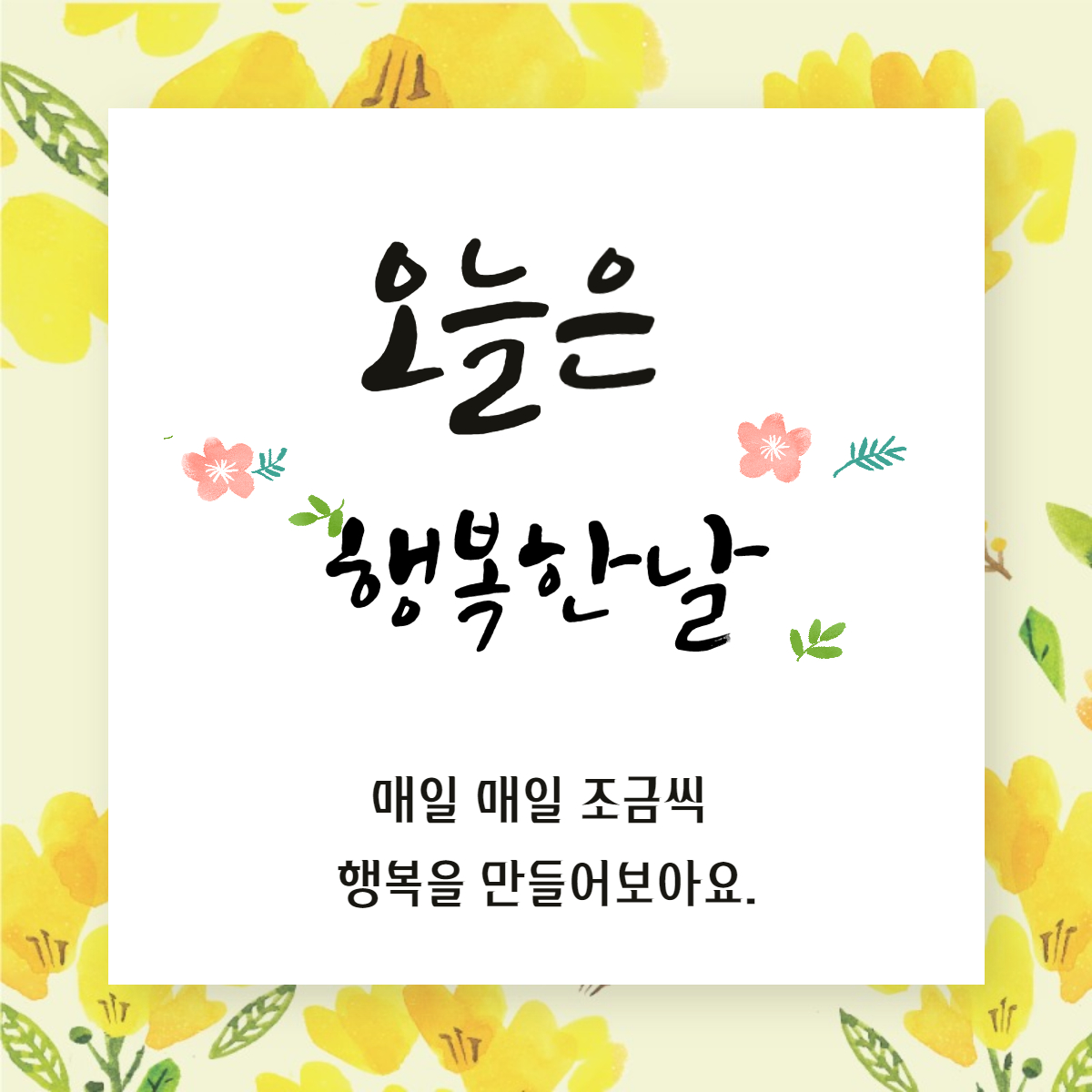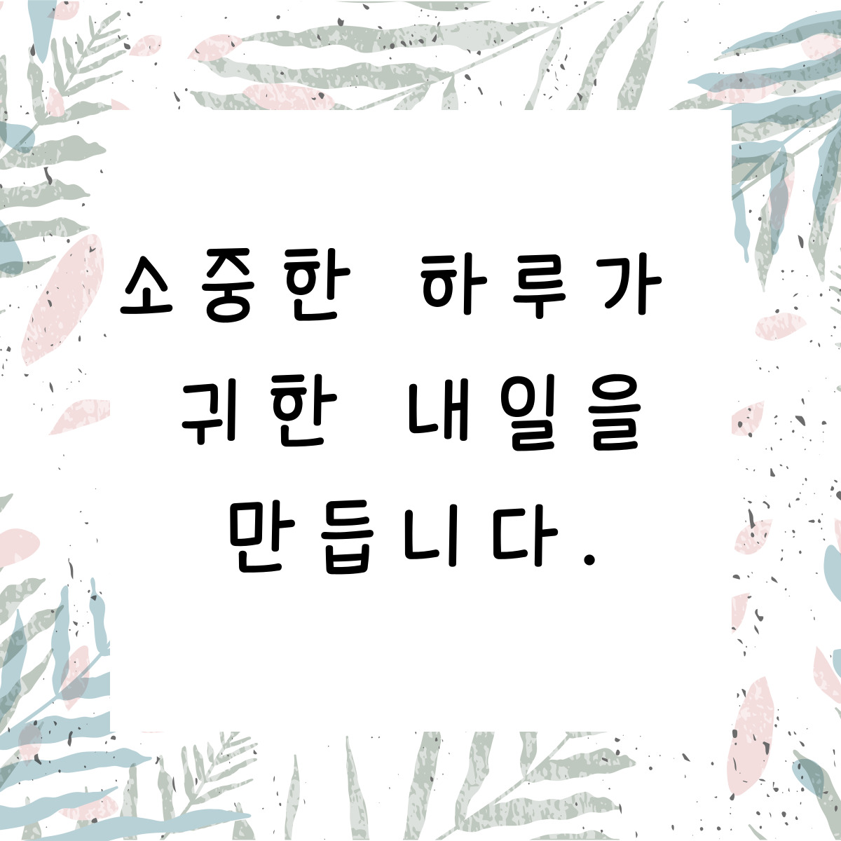 소중한 하루가 귀한 내일을 만듭니다. 오늘 하루도 기운 내서 활기차게 생활해보아요.
