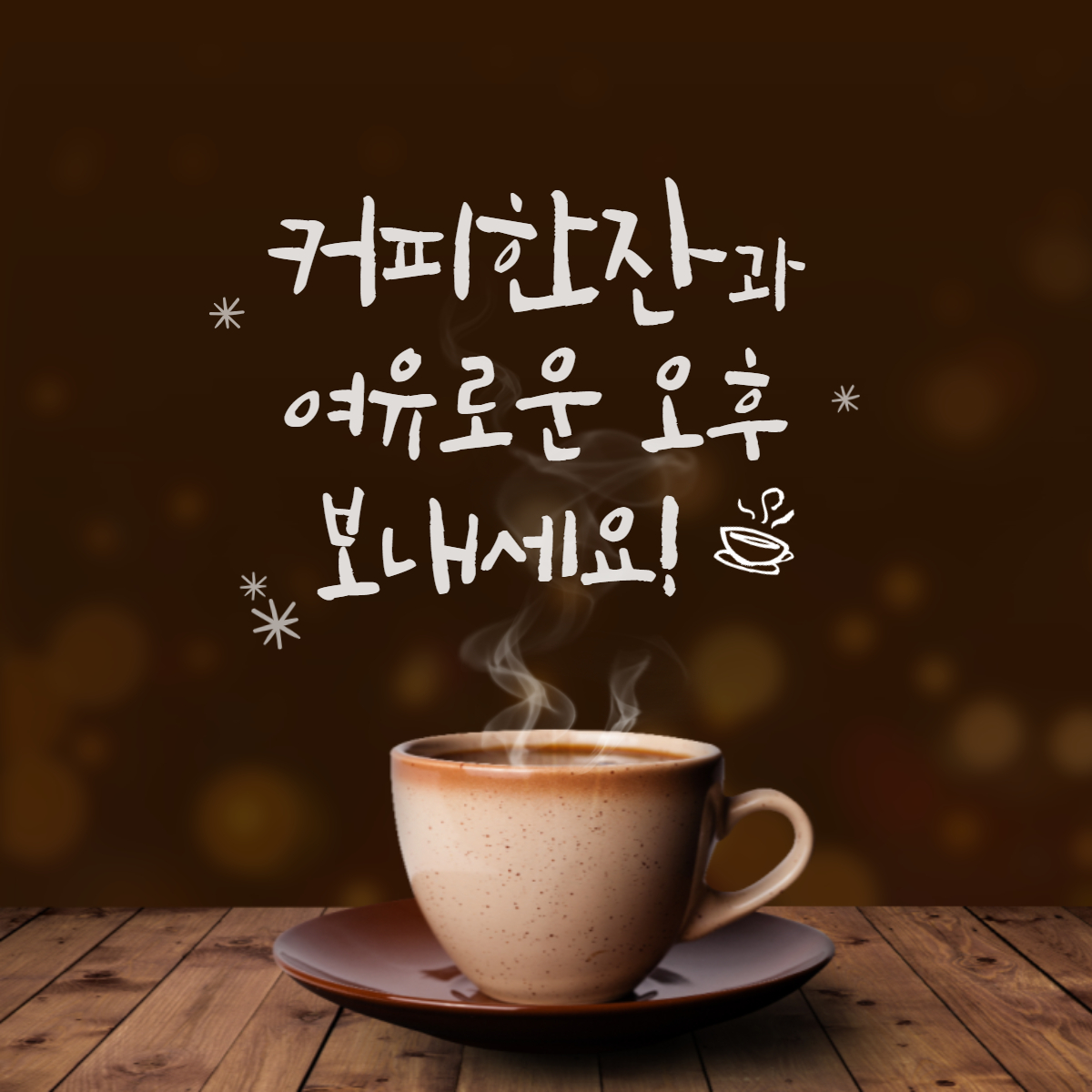 커피 한잔과 여유로운 오후 보내세요. 오후에 달달한 커피한잔으로 여유를 가지면 좋겠지요.