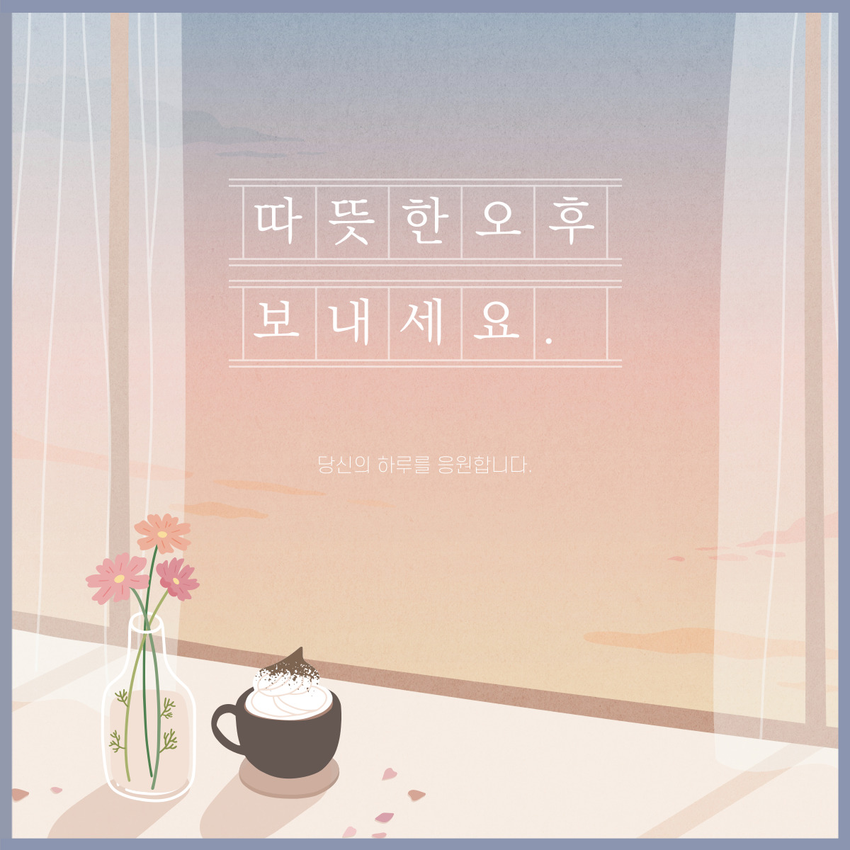 따뜻한 오후 보내세요. 당신의 하루를 응원합니다. 나른한 오후에 이런 카톡 메세지 받으면 기분이 좋아질 듯합니다.