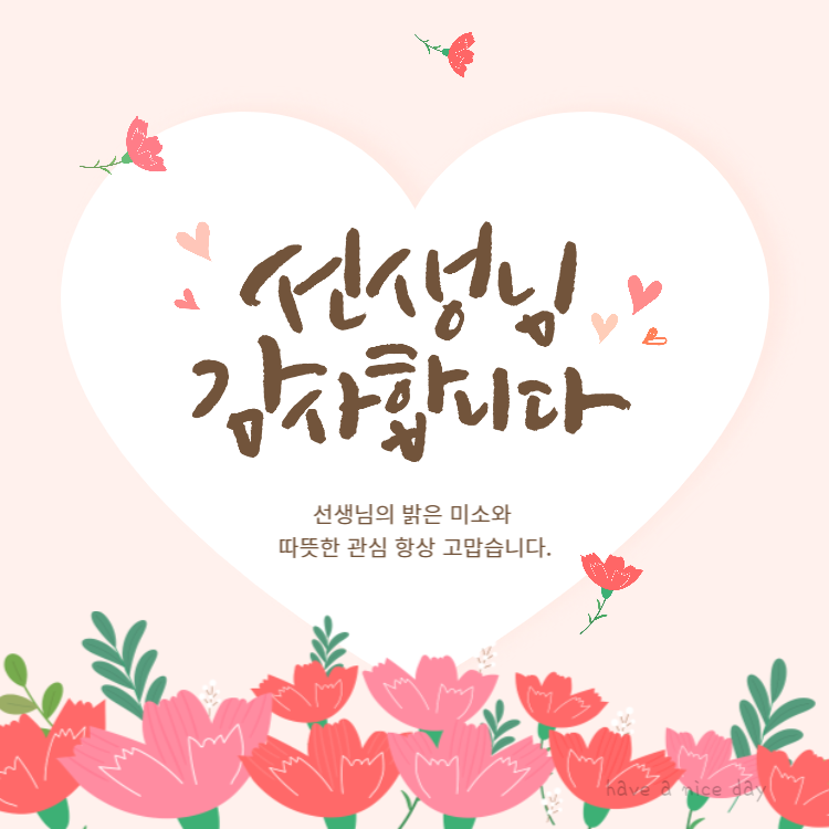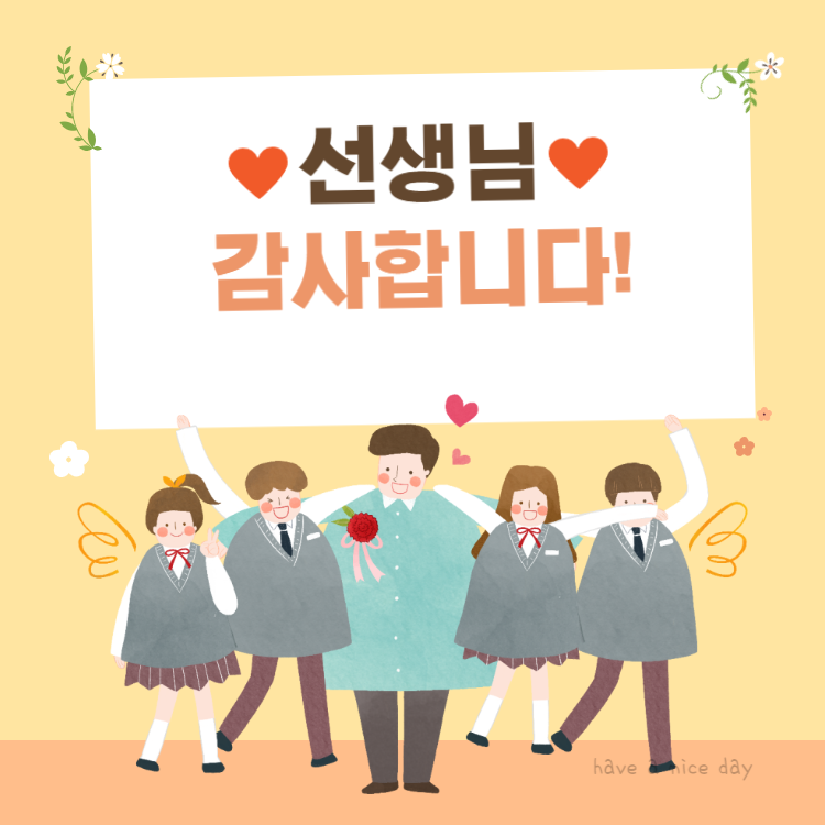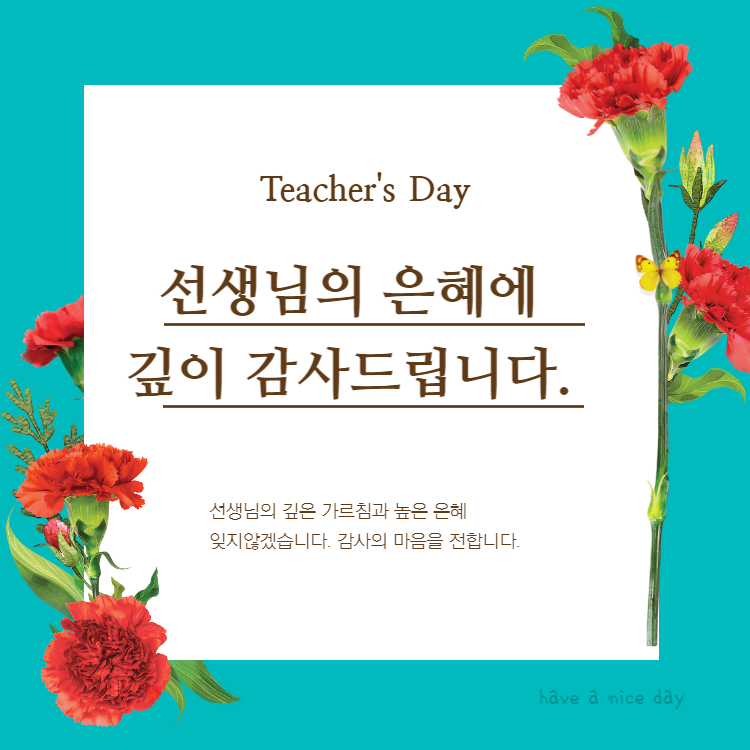 이런 날이 아니면 제 마음을 표현하기 쉽지 않네요. 항상 저희를 바르고 멋진 사람이 될 수 있게 가르쳐 주셔서 감사합니다. 선생님의 은혜에 보답하는 멋진 사람이 되겠습니다. 감사합니다. 그리고 사랑합니다.