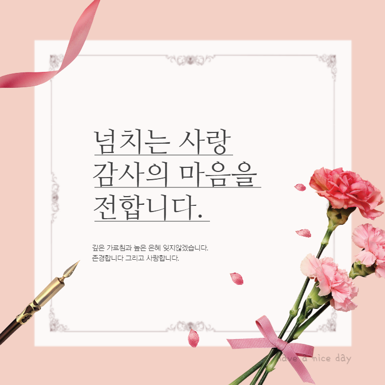 선생님 고맙습니다. 카네이션 이미지 인사말입니다.