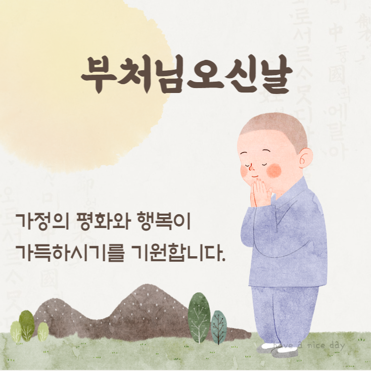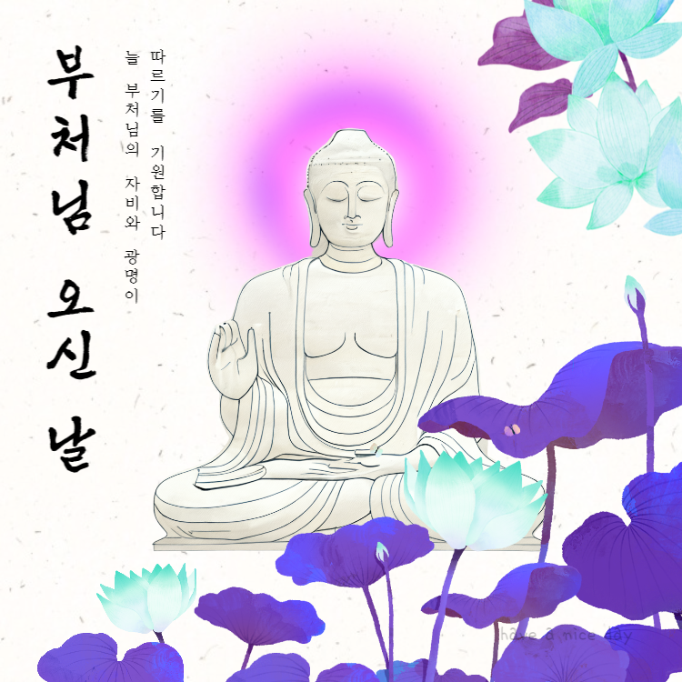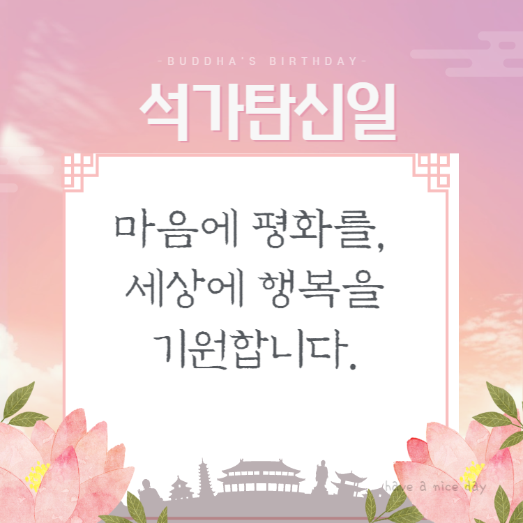 오늘은 부처님 오신날입니다. 저는 무교이지만 어릴 적에 부모님을 따라 석가탄신일에는 절에 따라다니기도 했지요. 동네에서는 대로변에서 연등행사도 크게 열리기도 했었던 기억이 있었습니다. 부처님 오신 날 인사말 이미지를 만들어 보았으니 많은 이용 부탁드리겠습니다. 석가탄신일 이미지를 만들어보았으니 문자나 카톡으로 안부 메세지를 전해 보는 것은 어떨까요?